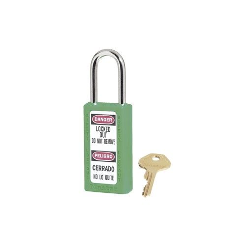 Light-weight (90gr) Zenex composite safety padlock green with a (6mm) hardened steel shackle.