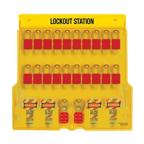 Filled Lock-out station with 20 Zenex safety padlocks and accessories.