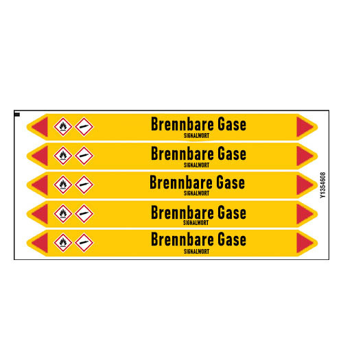 Pipe markers for Chlorethan in German with legend and text. Category: Flammable gas.