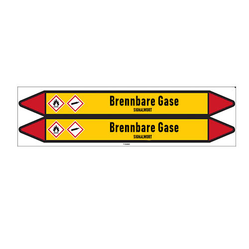 Pipe markers for Propan in German with legend and text. Category: Flammable gas.