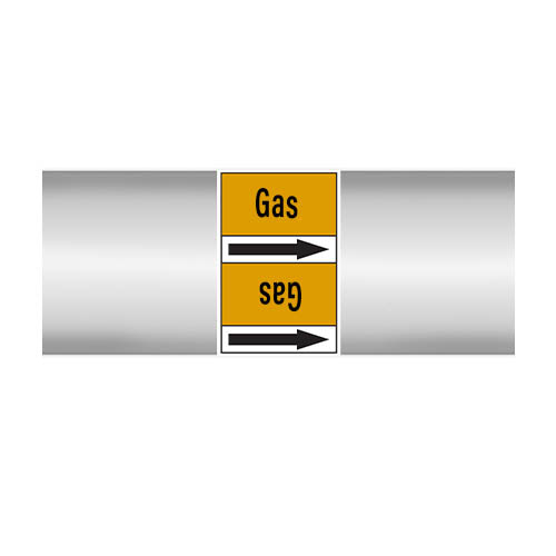 Pipe markers for Aardgas LD in Dutch with legend and text. Category: Gas.