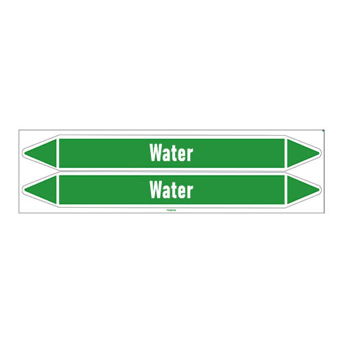 Weatherproof: yes Color: White text on a green background Material: Self-adhesive laminated polyester Temperature range: -40°C to +120 °C Language: English Chemical resitant: Yes UV-resitant: Yes Substance: Drinking cold water Danger symbols: In accordance with the CLP regulation -
