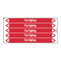 Pipe markers for Fire network in English with legend and text. Category: Fire fighting