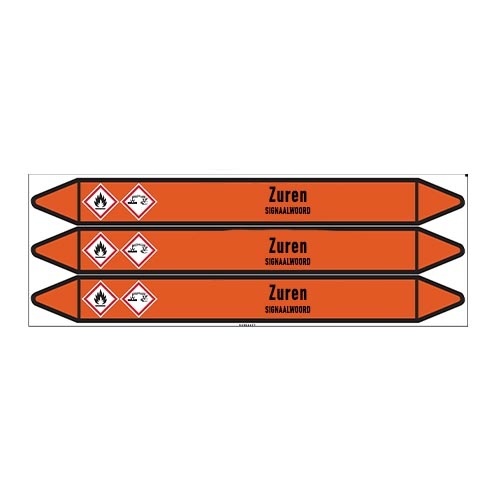 Pipe markers for Zwavelzuur in Dutch with legend and text. Category: Acids.