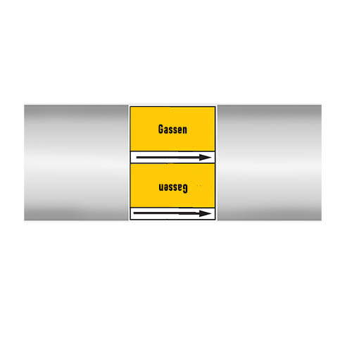 Pipe markers for Afvoer in Dutch with legend and text. Category: Gas.