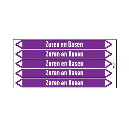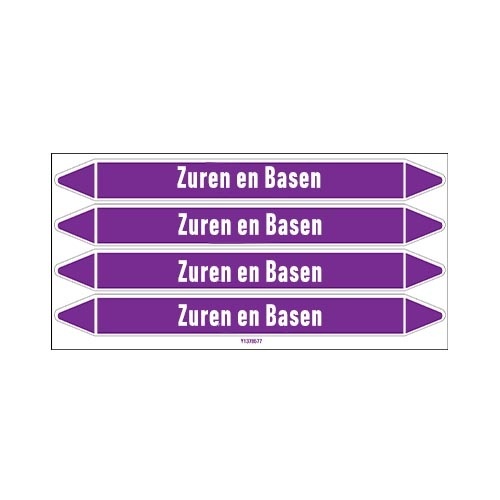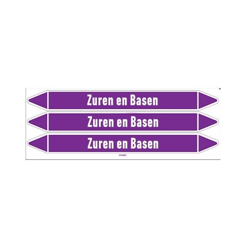 Pipe markers for Zure oplossing in Dutch with legend and text. Category: Acids and Alkalis.