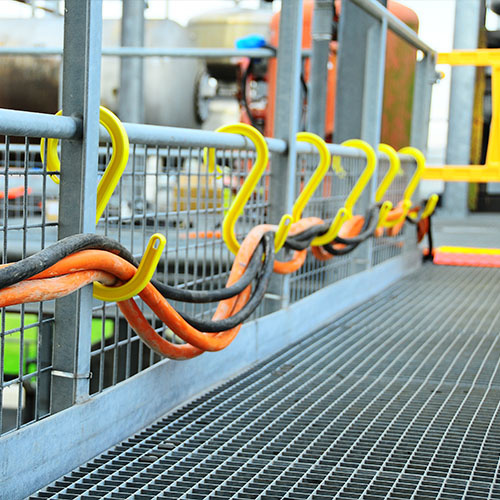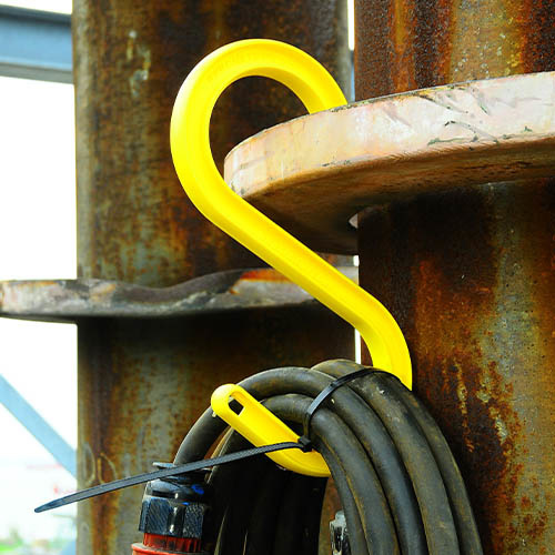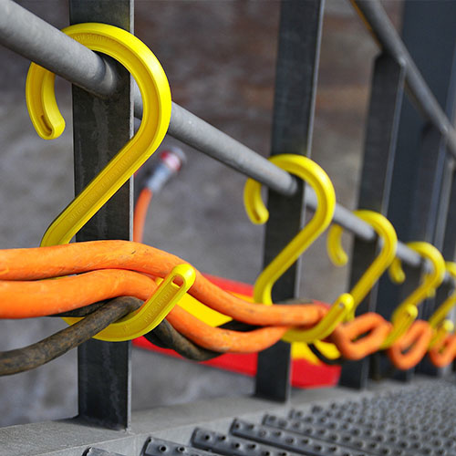 The CableSafe S-hooks, also called Safety Hooks, for cable management are ideal for construction and demolition work. The S-hooks have a lifespan of up to 25 years. A tidy and uncluttered floor makes a major contribution to fewer accidents in the workplace. Available in Yellow or Glow in the dark.