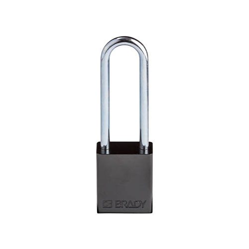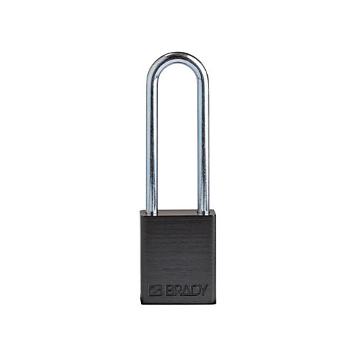 - Aluminium safety padlock black with a (Ø6.40mm, H 76mm) hardened steel shackle.