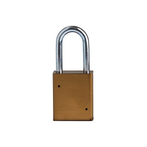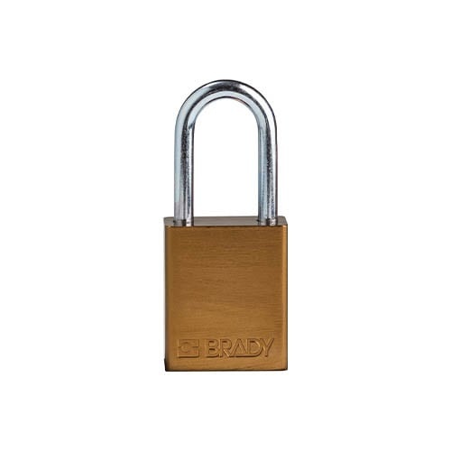 - Aluminium safety padlock brown with a (Ø6.40mm, H 38mm) hardened steel shackle.