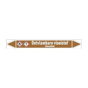 Pipe markers for Minerale olie in Dutch with legend and text. Category: Flammable liquids.