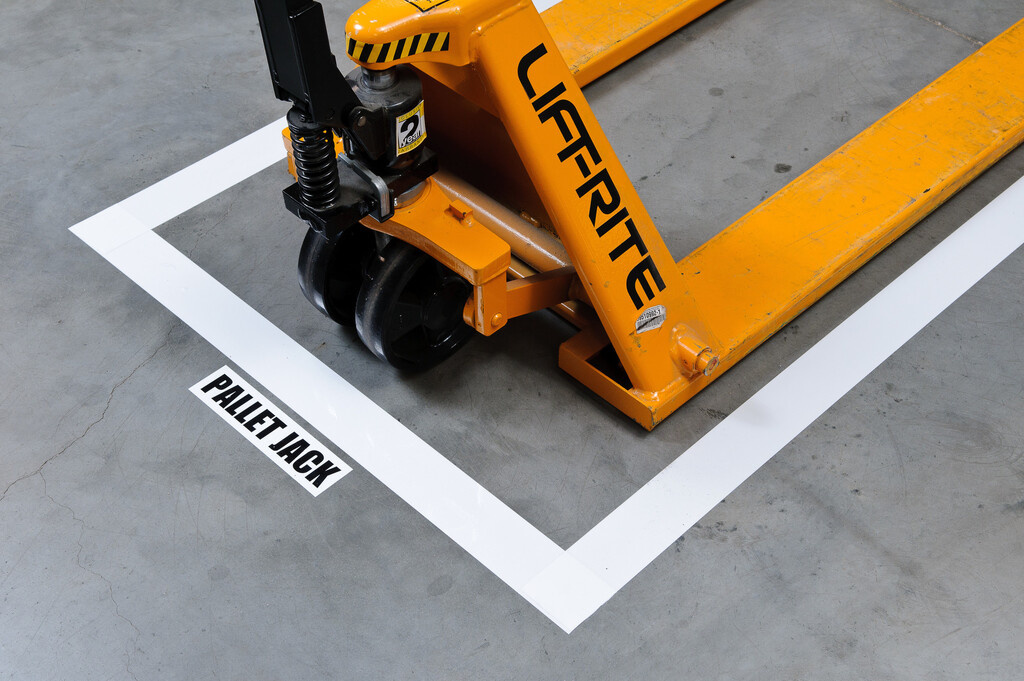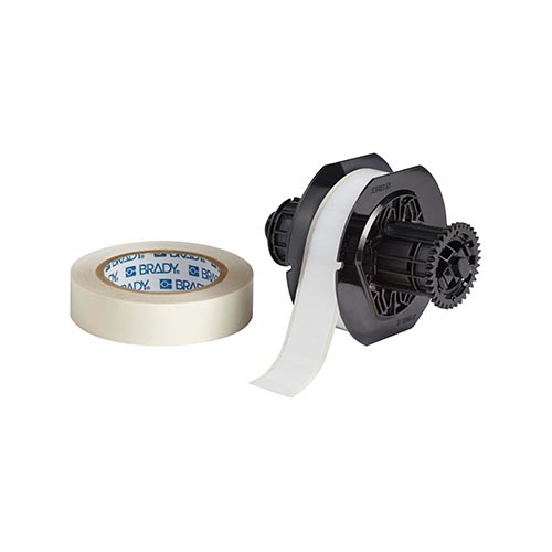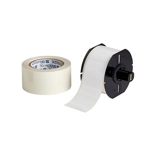 The Toughstripe printable floor marking tape from Brady is made of white polyester with a glossy finish. The role of floor marking tape comes with a roll of polyester overlaminate.